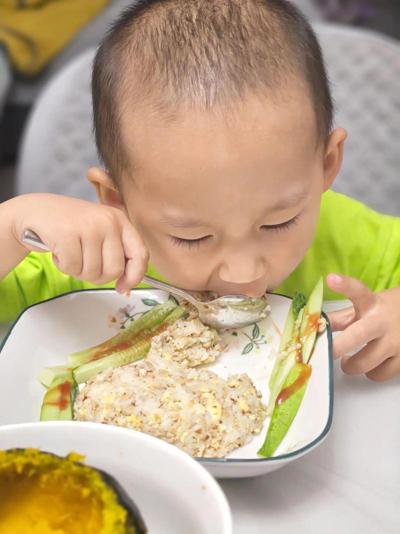给孩子夹菜吹凉食品再喂以致平直“口对面试温”